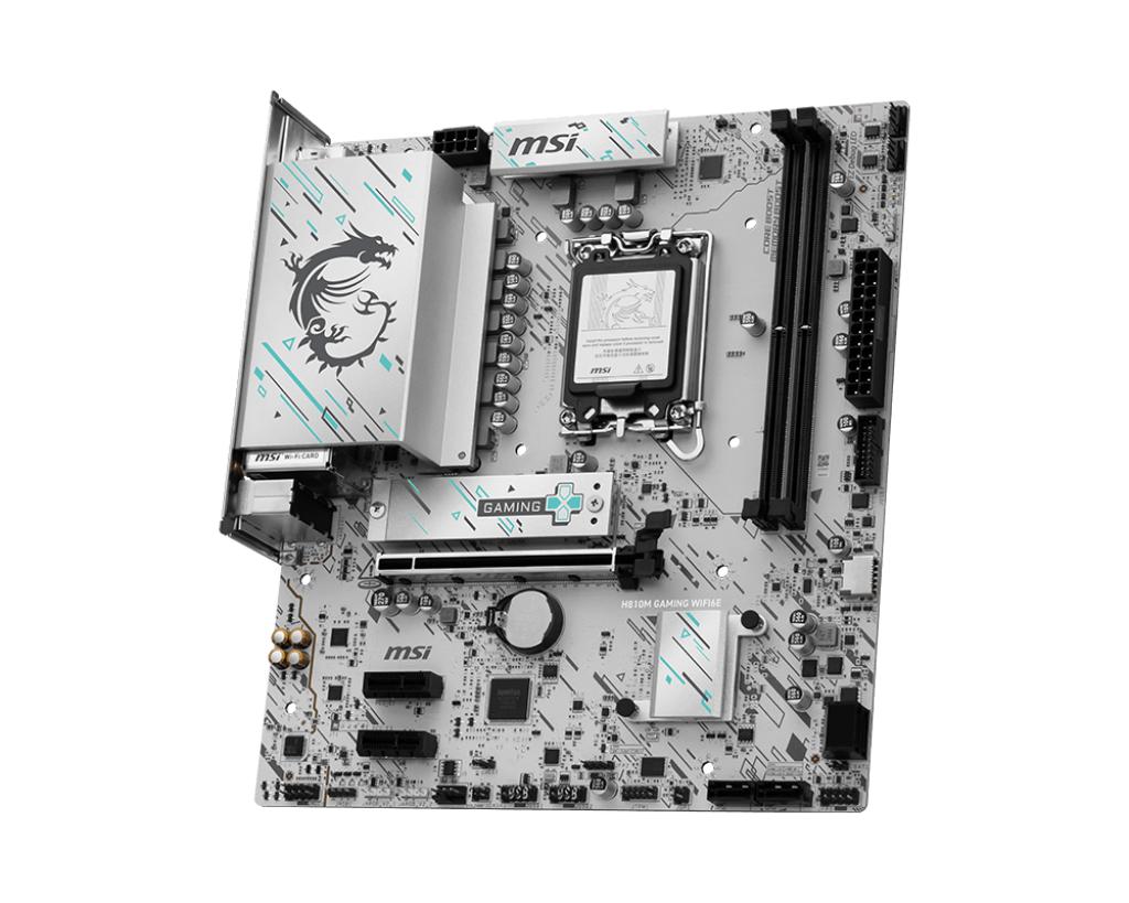 Материнская плата MSI H810M GAMING WIFI6E – это уникальное сочетание функциональности и стильного дизайна. Эта компактная модель в форм-факторе micro-ATX с лаконичным черным оформлением и игровыми акцентами идеально впишется в любой современный корпус.