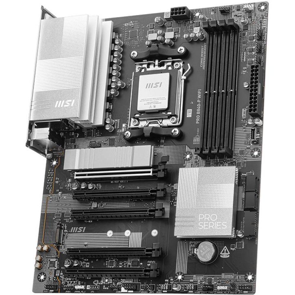 Материнская плата MSI PRO B840-P WIFI построена на чипсете AMD B840 и поддерживает процессоры AMD Ryzen 9000/8000/7000 Series с разъёмом Socket AM5. Она оснащена 4 слотами DDR5 UDIMM, что позволяет установить до 256GB оперативной памяти.