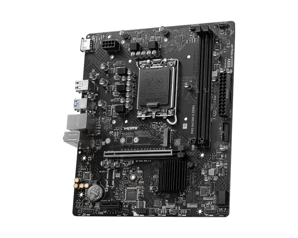 Материнская плата MSI PRO H610M-S DDR4 представляет собой надежное решение для построения рабочих и домашних компьютеров на базе процессоров Intel 12, 13 либо 14 поколения. Эта модель выполнена в компактном форм-факторе Micro-ATX, что позволяет легко устанавливать ее в различные корпусные решения, обеспечивая гибкость в конфигурациях системы.