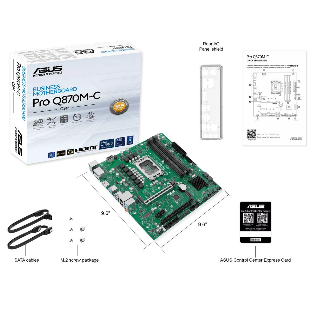 Материнская плата ASUS PRO Q870M-C-CSM разработана специально для корпоративного сегмента, малого и среднего бизнеса, а также государственных учреждений. В этой модели формата Micro-ATX основной акцент сделан на надежность, безопасность, долгосрочную стабильность поставок и удобство удаленного управления.