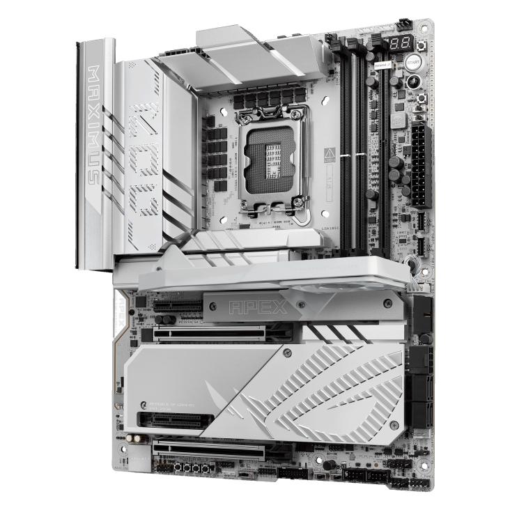 Эта материнская плата ASUS ROG MAXIMUS Z890 APEX - это мощное решение для сборки высокопроизводительных ПК, ориентированных на использование процессоров Intel Core Ultra (серия 2) с поддержкой современных технологий и возможностями подключения. Она отличается компактным размером и большим количеством слотов M.2 для хранилища.