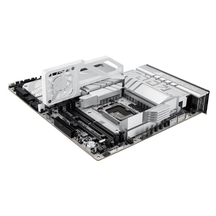 • Хранилище: 6 слотов M.2 и 4 порта SATA 6 Гбит/с для быстрого хранения данных. Два слота M.2 (DIMM.2_1 и DIMM.2_2) расположены на плате ROG DIMM.2, что позволяет использовать накопители M.2 в формате 2230 и выше.