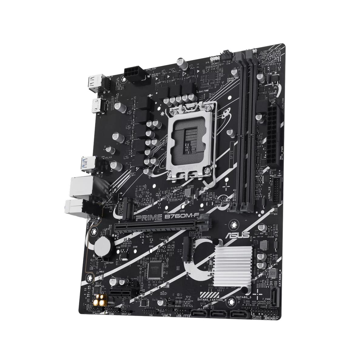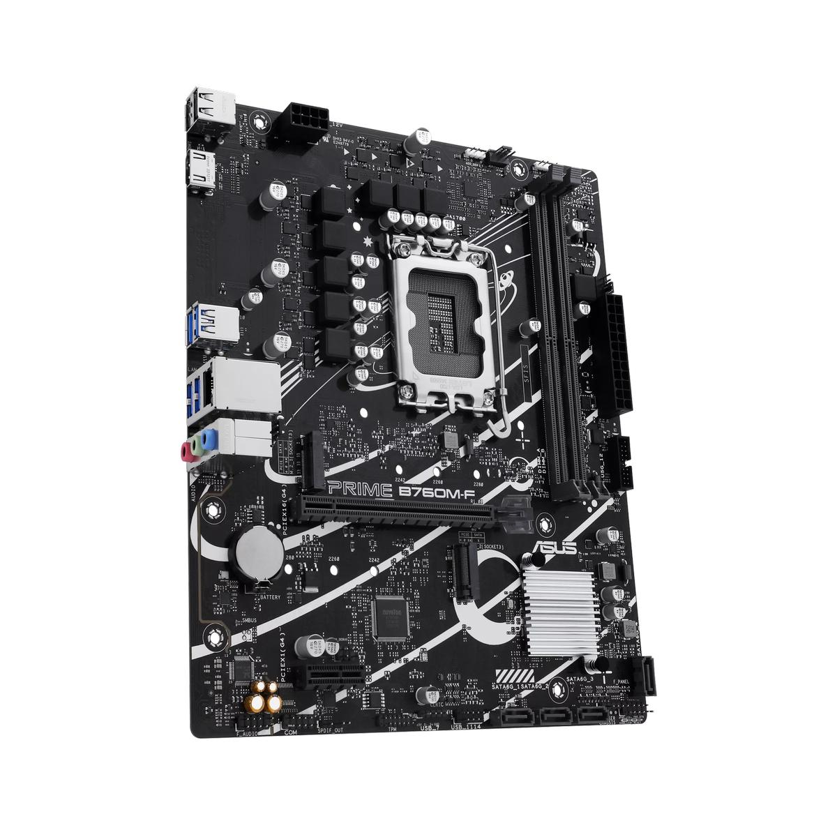 ASUS PRIME B760M-F – идеальное решение для сборщиков компьютеров, желающих построить мощную и универсальную рабочую станцию или игровую машину. Отличаясь продуманностью конструкции, высоким качеством исполнения и широкими возможностями по настройке, эта материнская плата станет надежным фундаментом вашего персонального компьютера.