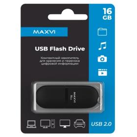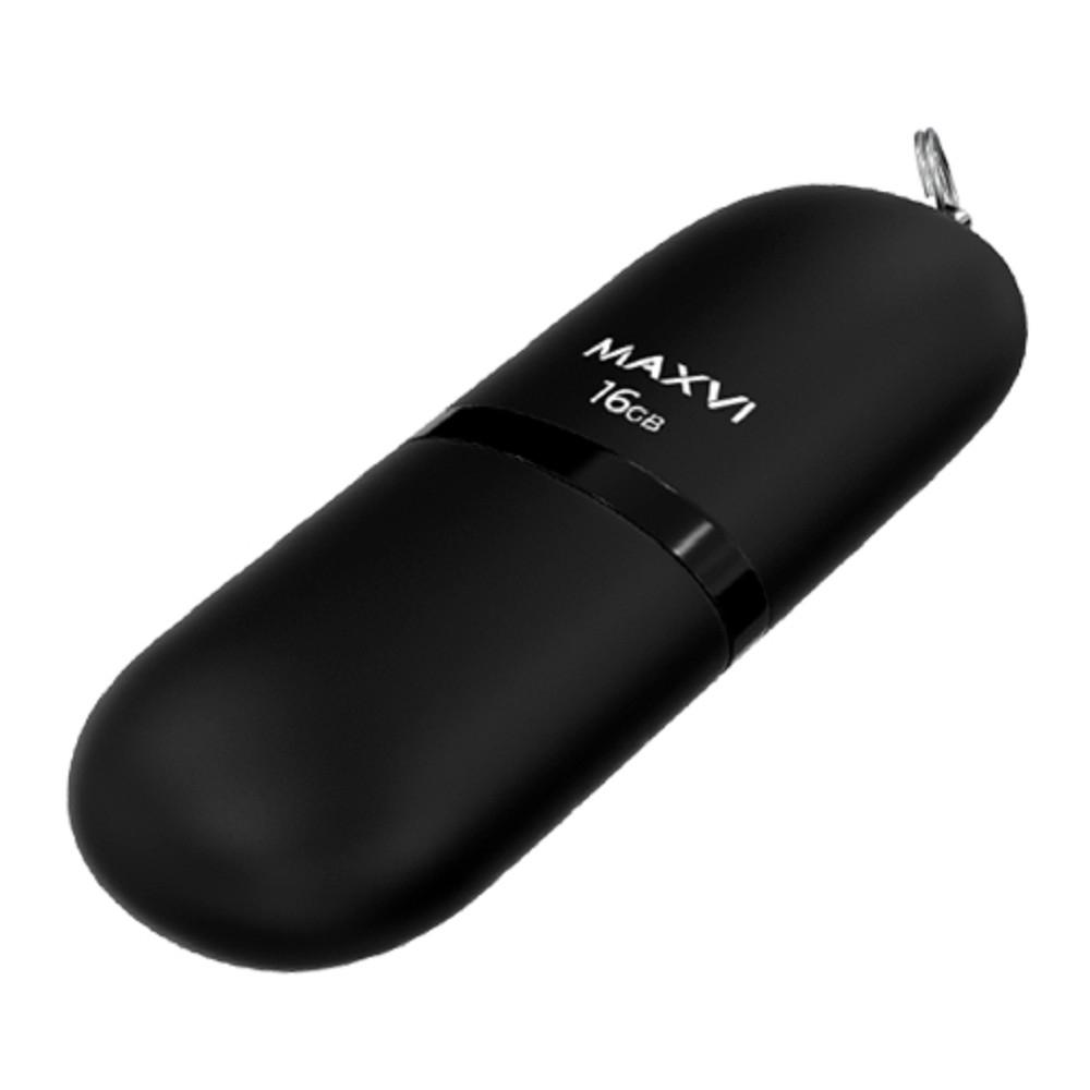 Maxvi USB Drive 16GB SF black, монолит с колпачком, soft touch, USB 2.0 / 4dealer.ru