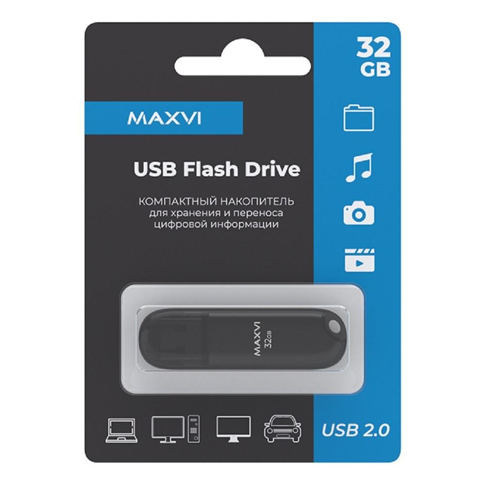 Maxvi USB Drive 32GB P1 black, монолит с колпачком, ABS пластик, USB 2.0 / 4dealer.ru