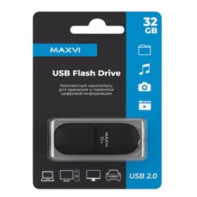 Maxvi USB Drive 32GBSF 32GB black, монолит с колпачком, soft touch, USB 2.0 / 4dealer.ru