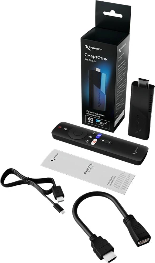 | Комплектация | Триколор СмартСтик, Пульт дистанционного управления, 2x батарейки ААА, Руководство пользователя, HDMI-кабель, Кабель питания (USB – USB type C), Вкладыш с промо-подпиской, Упаковка в новом фирменном дизайне «Триколор» |