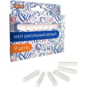 Мел школьный белый № 1 School Отличник (9 штук в упаковке)<br> <br> Белый школьный мел предназначен для рисования и письма на различных шероховатых поверхностях, включая школьные доски и асфальт. Он идеально подходит для учебных занятий, творческих проектов и профессионального использования.<br> <br> Изготовлен из экологически чистых материалов, не содержит примесей и добавок, что делает его безопасным при регулярном применении. Мел не крошится и не царапает поверхность, обеспечивая ровное и чёткое нанесение линий.<br> <br> Благодаря средней твёрдости и квадратной форме, мел удобно держать в руке, а его конструкция предотвращает скатывание.<br> <br> В набор входит 9 белых мелков, каждый длиной 80 мм и шириной 13 мм. Упакован в картонную коробку с европодвесом, удобную для хранения и транспортировки.