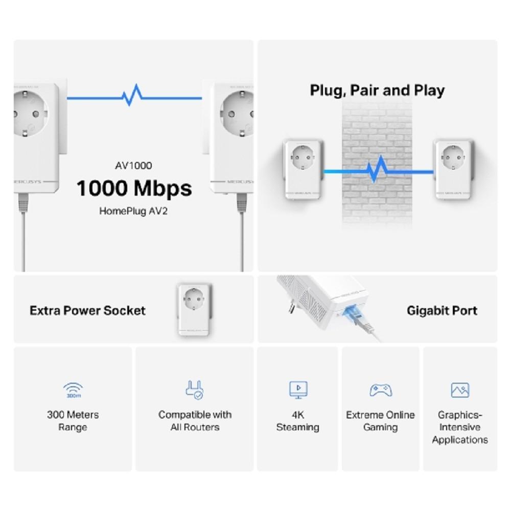 Mercusys MP500P KIT AV1000 Комплект гигабитных Powerline-адаптеров со встроенной розеткой / 4dealer.ru
