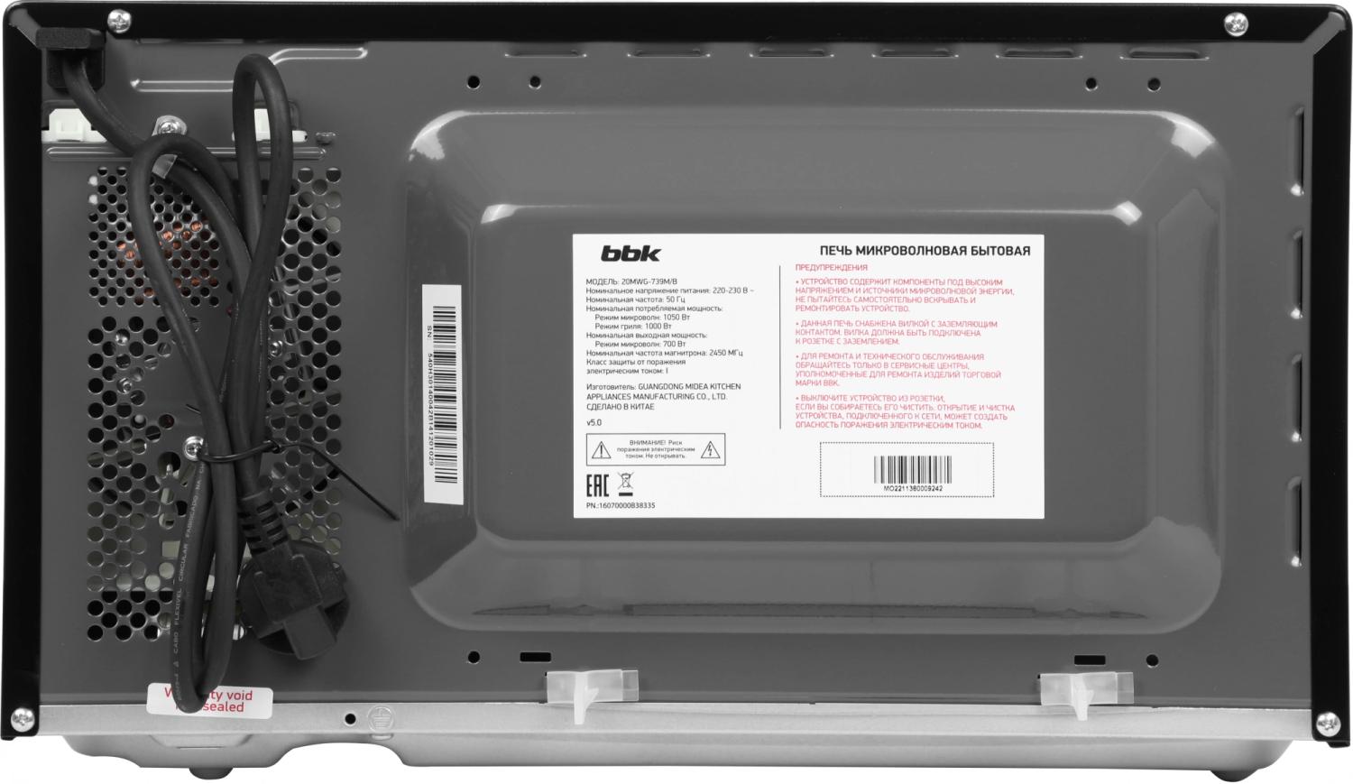| Управление | звуковой сигнал окончания приготовления, регулировка мощности |