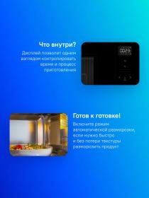 | Управление | звуковой сигнал окончания приготовления, отключение сигнала, регулировка мощности |