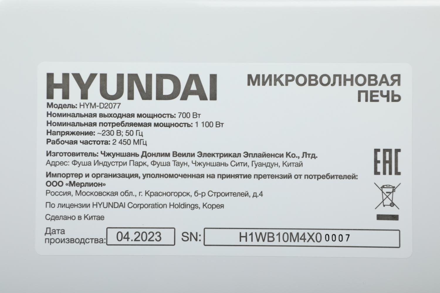Микроволновая Печь Hyundai HYM-D2077 20л. 700Вт белый / 4dealer.ru