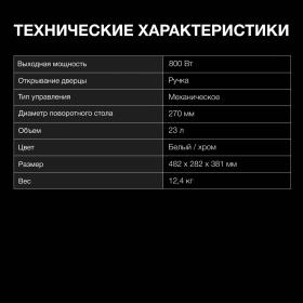 | Мощность микроволн | 800 |