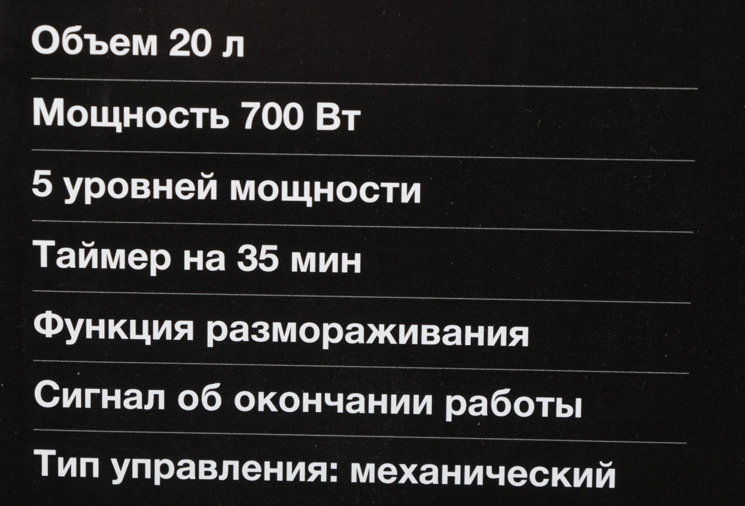 | Управление | звуковой сигнал окончания приготовления, регулировка мощности |