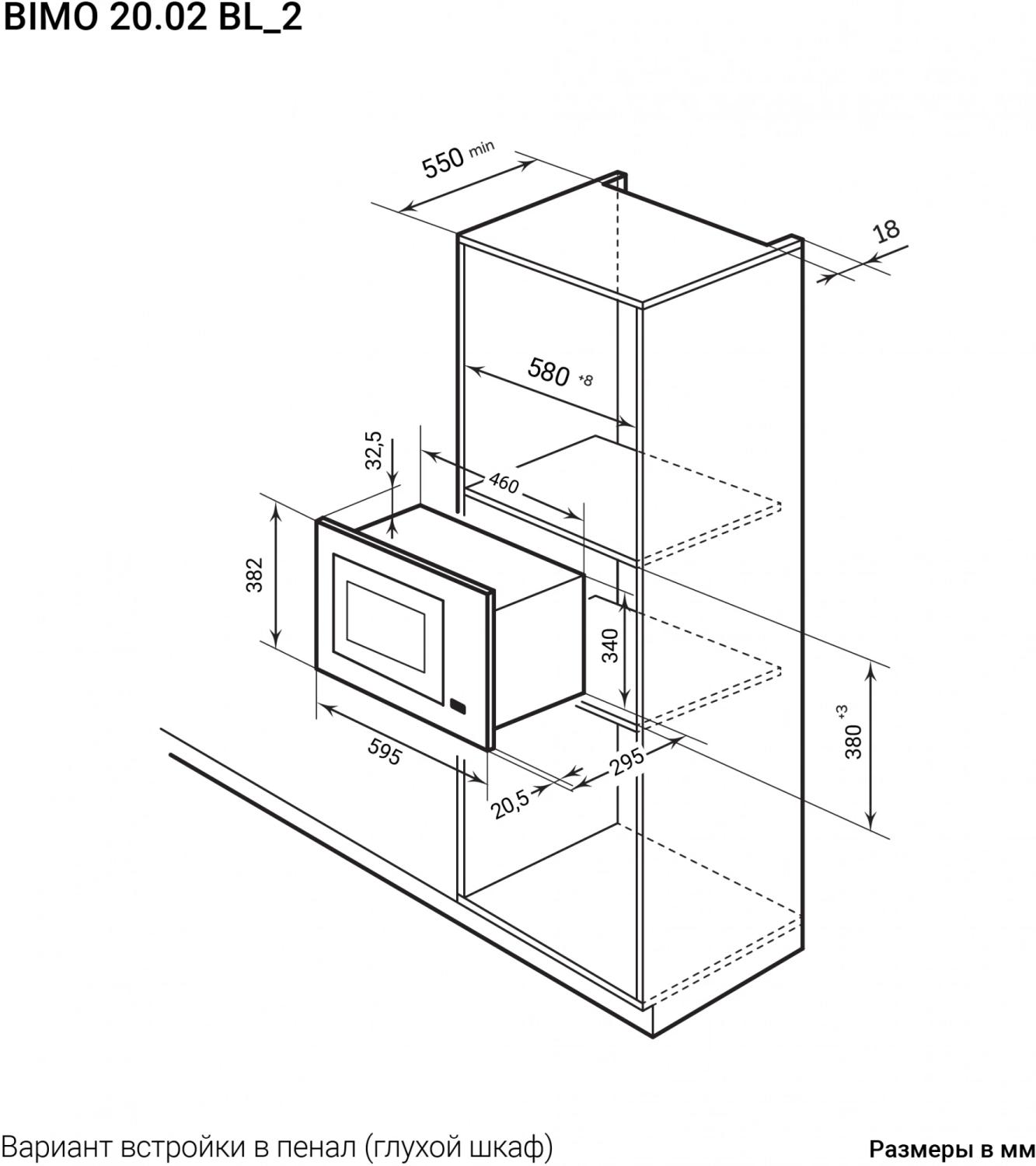 Микроволновая печь Lex BIMO 20.02 20л. 700Вт черный (встраиваемая) / 4dealer.ru