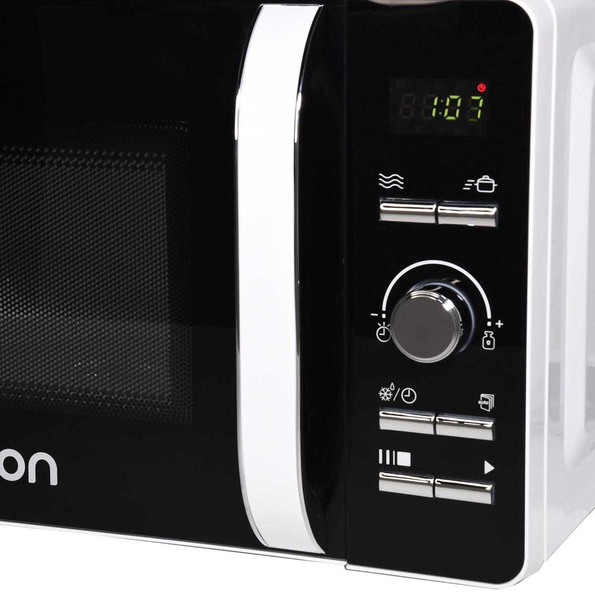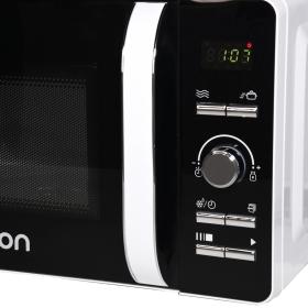 | Описание | Микроволновая печь с электронным управлением MD2033 и внутренним объемом 20 литров оснащена LED-дисплеем с часами и таймером на 60 минут. |