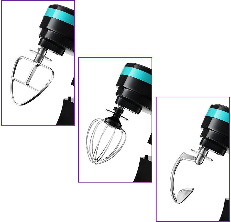 | Особенности | В комплекте идут венчик для взбивания, крюк для замеса крутого теста, насадка для смешивания и приготовления пюре. Форма насадок и чаши подобраны так, что почти при любом количестве продуктов насадка качественно их перемешает. |