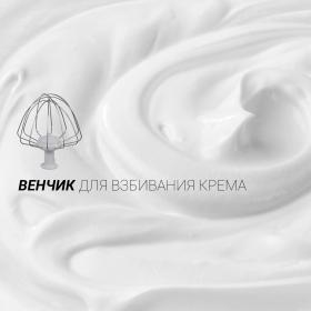 | Комплектация | 1. Кухонная машина 2. Венчик для взбивания 3. Тестомесильный крюк 4. Насадка для смешивания 5. Чаша 6. Крышка чаши 7. Инструкция по эксплуатации 8. Гарантийный талон |