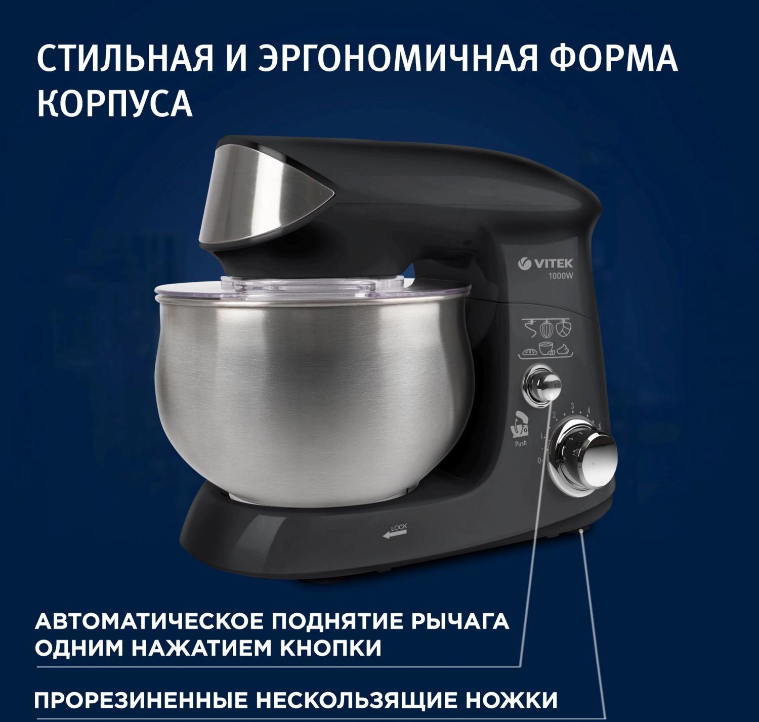 | Вид насадки | венчик для взбивания, крюки для теста, лопатка для перемешивания |