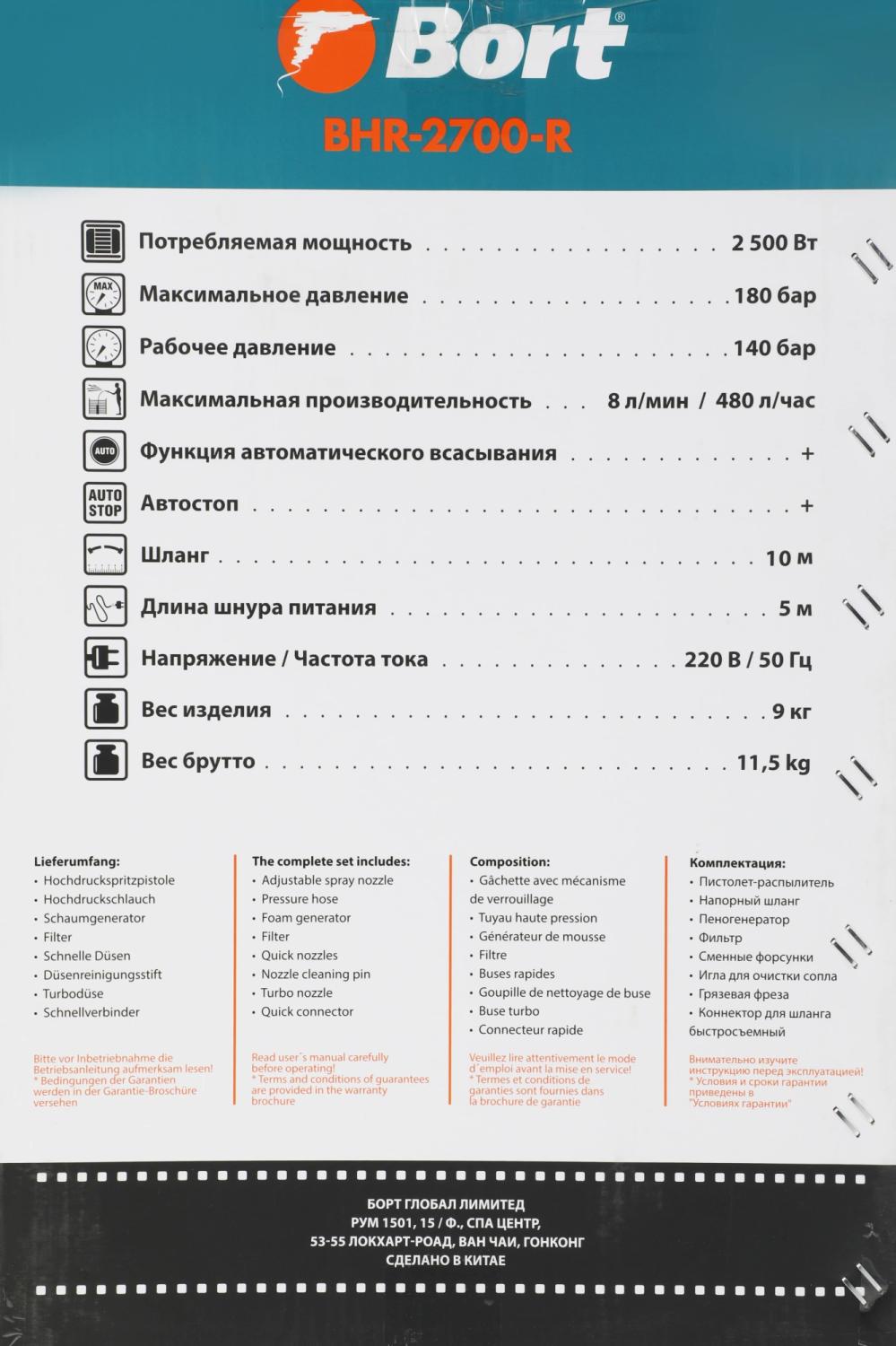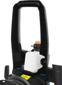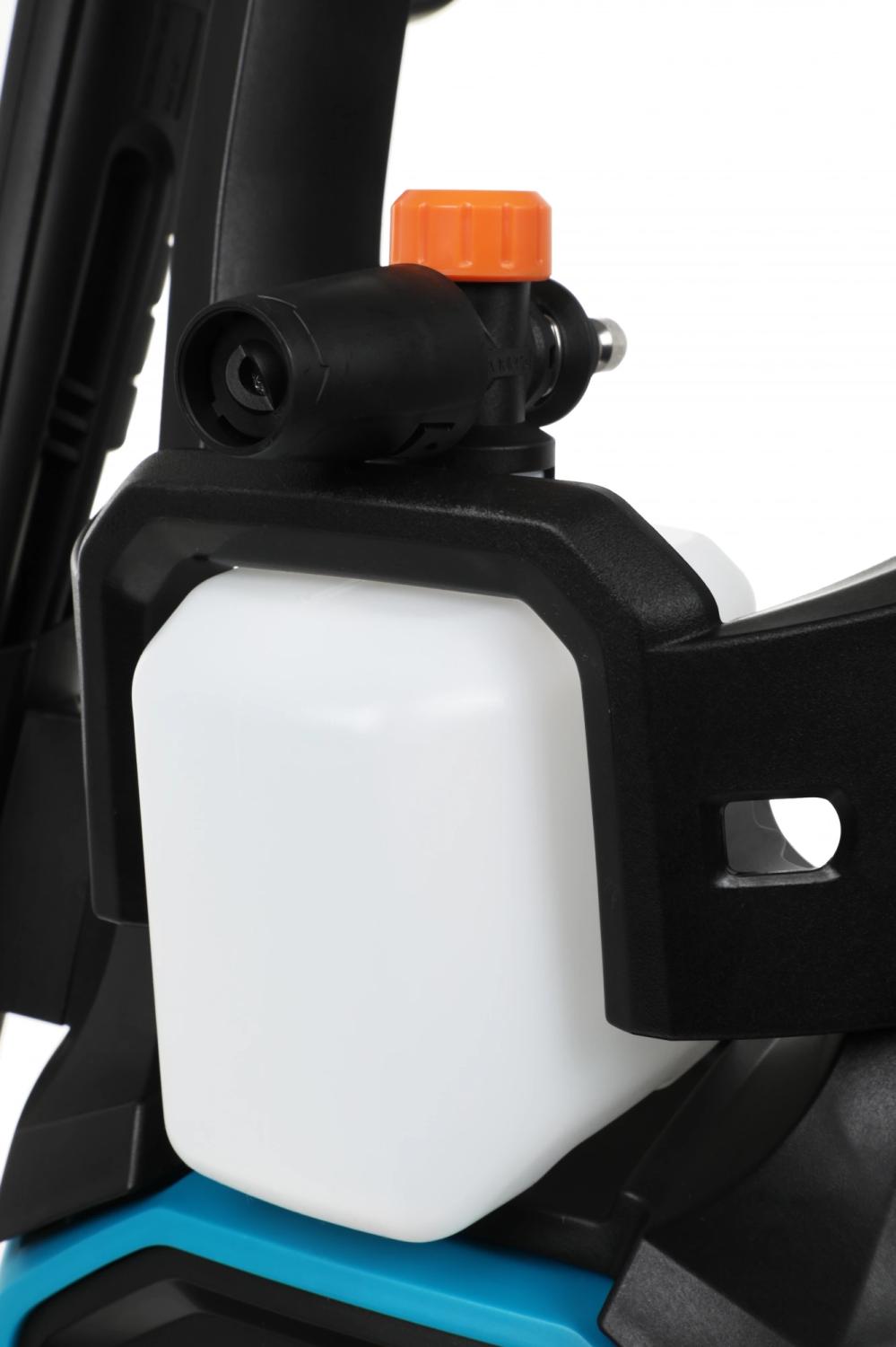 | Особенности устройства | забор воды из внешней емкости, забор воды из водопровода, использование чистящего средства, на колесах, пеногенератор, регулировка давления, система хранения аксессуаров на корпусе, шланг для забора воды |