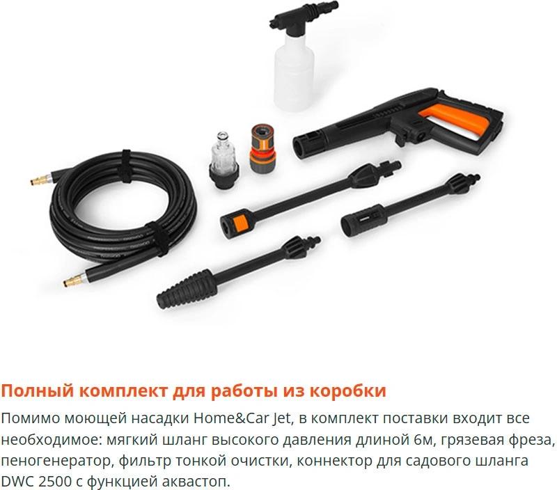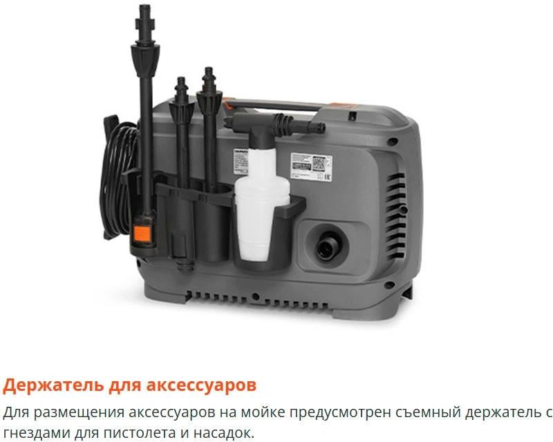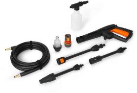 | Комплектация | Мойка высокого давления Профессиональный пистолет Шланг высокого давления Насадка на пистолет распылительная Насадка на пистолет грязевая фреза Фильтр очистки воды Быстросъемный коннектор Пеногенератор Держатель аксессуаров Руководство по эксплуатации |