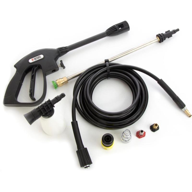 Моечная машина высокого давления Denzel R-165 применяется для очищения дорожек, заборов, строений, садового инвентаря и автомобилей от серьезных загрязнений бесконтактным методом. Получить результат как после профессиональной чистки позволяет мощный мотор 2200 Вт и помпа с высокой производительностью 420 л/час и давлением до 165 бар. Отсутствие доступа к водопроводу — не проблема. Легко наладить забор воды из любой емкости благодаря самовсасывающей системе, которая теряет всего 5% давления. Алюминиевая помпа со стальными плунжерами и высокой точностью подгонки деталей обеспечивает надежность и стабильное давление на выходе.Преимущества:С помощью быстросъемных форсунок, которые входят в комплект, можно подобрать оптимальный режим для работы в труднодоступных местах.Быстросъемный коннектор пистолета позволяет подключить шланг одним движением без использования дополнительного инструмента.Штуцеры изготовлены из металла, поэтому их сложно повредить даже при сильных рывках шланга.Блокировка рычага пистолета исключает непроизвольное включение мойки.В случае перегрева мотор отключается автоматически благодаря эффективной теплозащите.HPC коннектор обеспечивает быстрое подключение шланга к патрубку мойки.Встроенный пенокомплект позволяет легко наносить моющие средства для эффективного очищения от загрязнений.Большой ресурс при интенсивных нагрузках обеспечивает медная обмотка двигателя.Фильтр для очистки воды исключает риск засора и увеличивает ресурс помпы.Пистолет со стальной штангой позволяет работать в труднодоступных местах.Мойка оснащена колесами и ручкой для удобства транспортировки.Шланг и сетевой кабель 5 м каждый обеспечивают мобильность в процессе работы.Класс защиты II — двойная изоляция токопроводящих элементов.Гарантия от производителя 3 года.Внешний вид и/или характеристики товара могут быть изменены производителем в соответствии с производственным процессом.