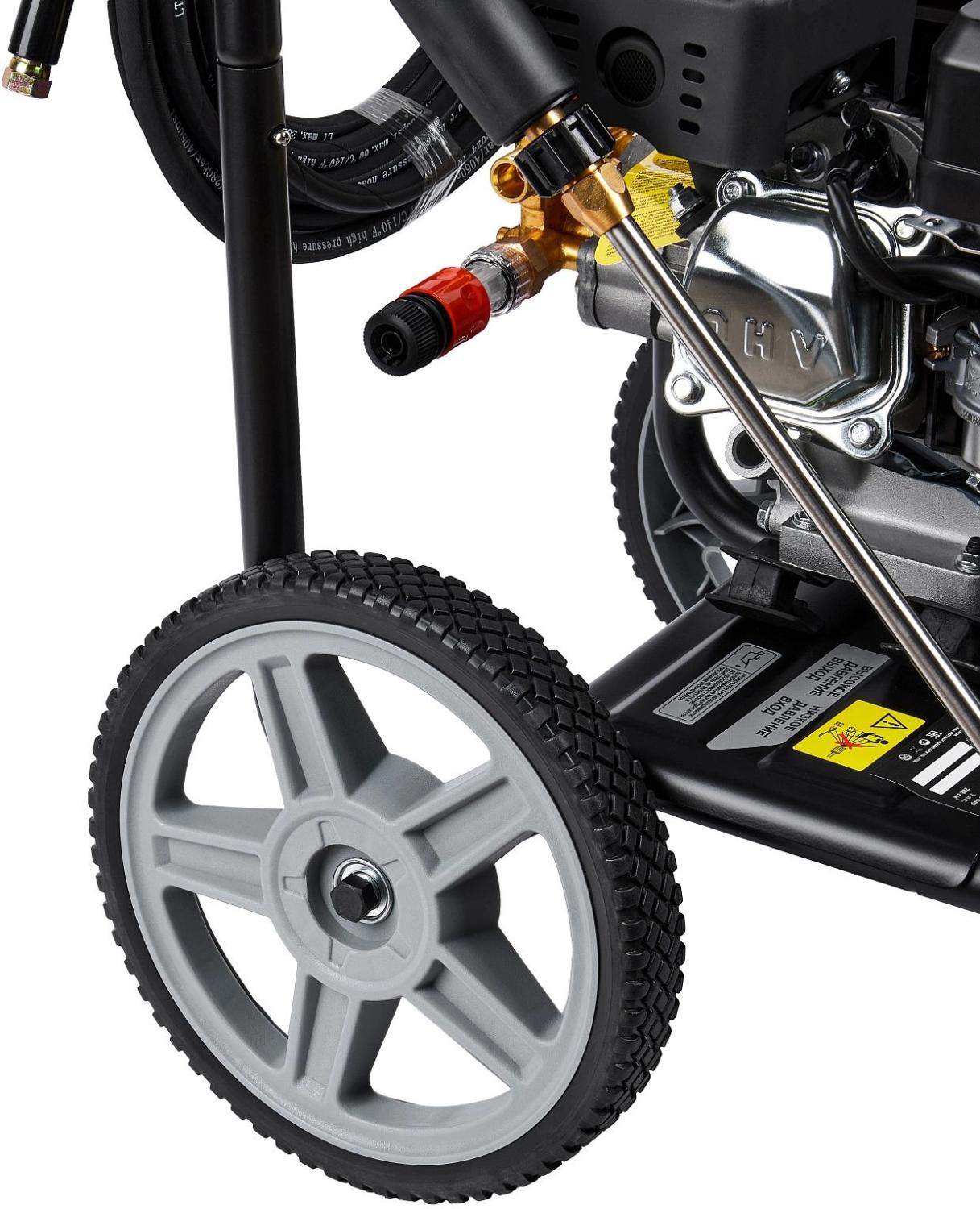 | Особенности устройства | забор воды из внешней емкости, забор воды из водопровода, использование чистящего средства, на колесах, пеногенератор, регулировка давления, система хранения аксессуаров на корпусе, шланг для забора воды |