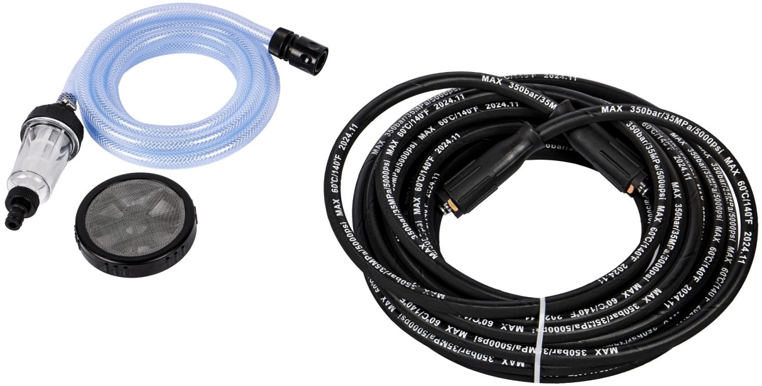 | Особенности устройства | забор воды из внешней емкости, забор воды из водопровода, на колесах, пеногенератор, регулировка давления, система хранения аксессуаров на корпусе, шланг для забора воды |