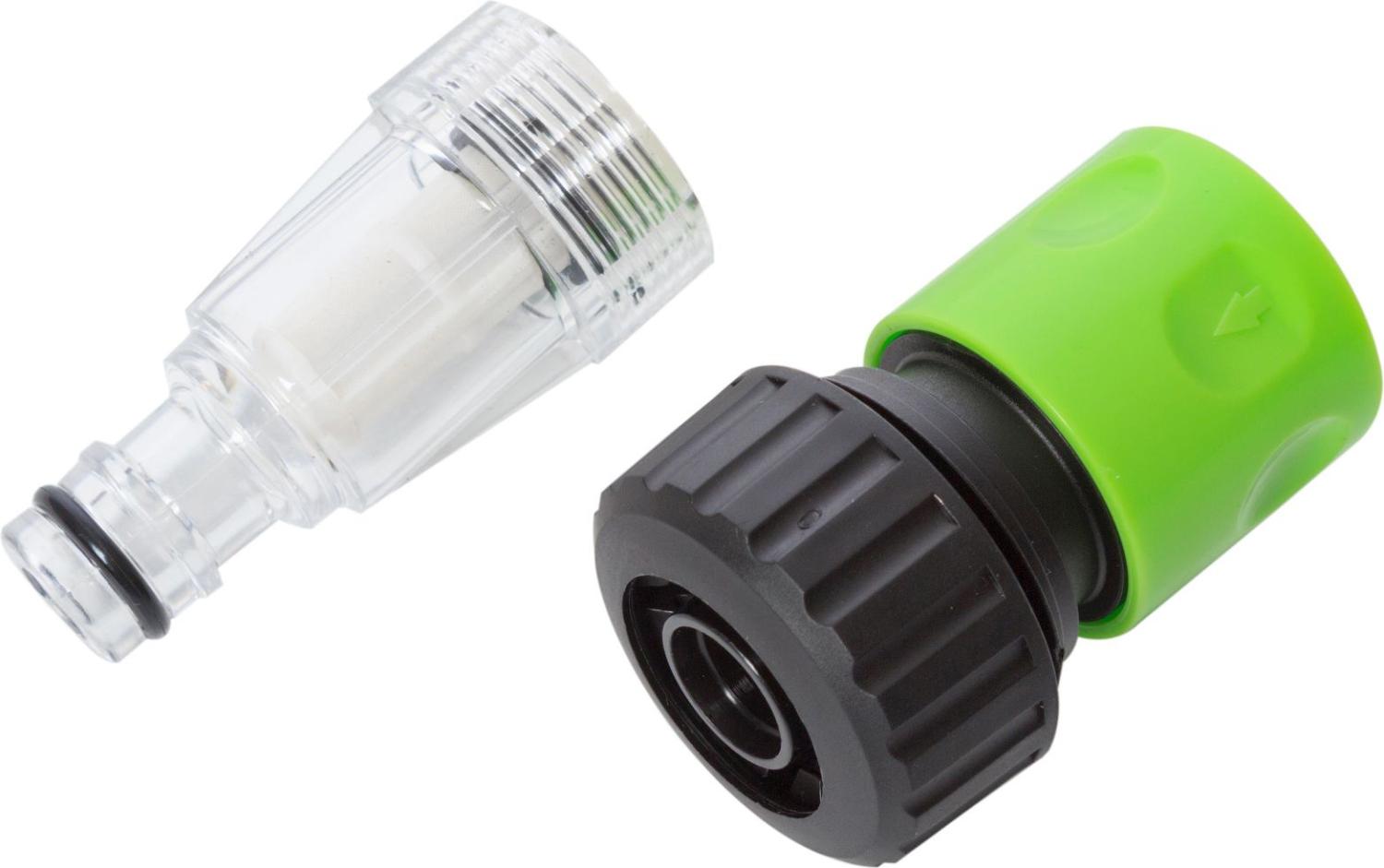| Комплектация | Мойка высокого давления, Пистолет, Удлинитель, Грязевая фреза, Пенообразователь, Водяной фильтр, Шланг высокого давления, Коннектор 3/4, Сменные сопла - 2шт, Инструкция |