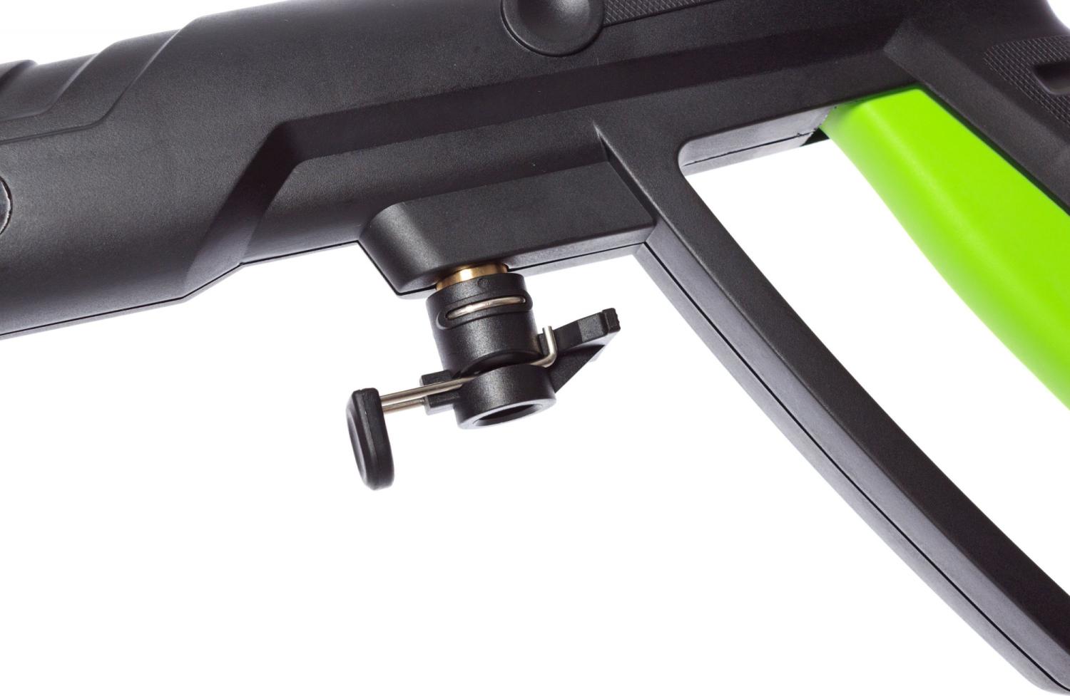 | Особенности | Пистолет с блокировкой от случайного нажатия на клавишу пуска для защиты оператора в процессе мойки |