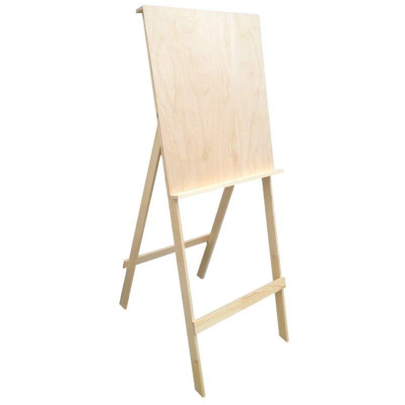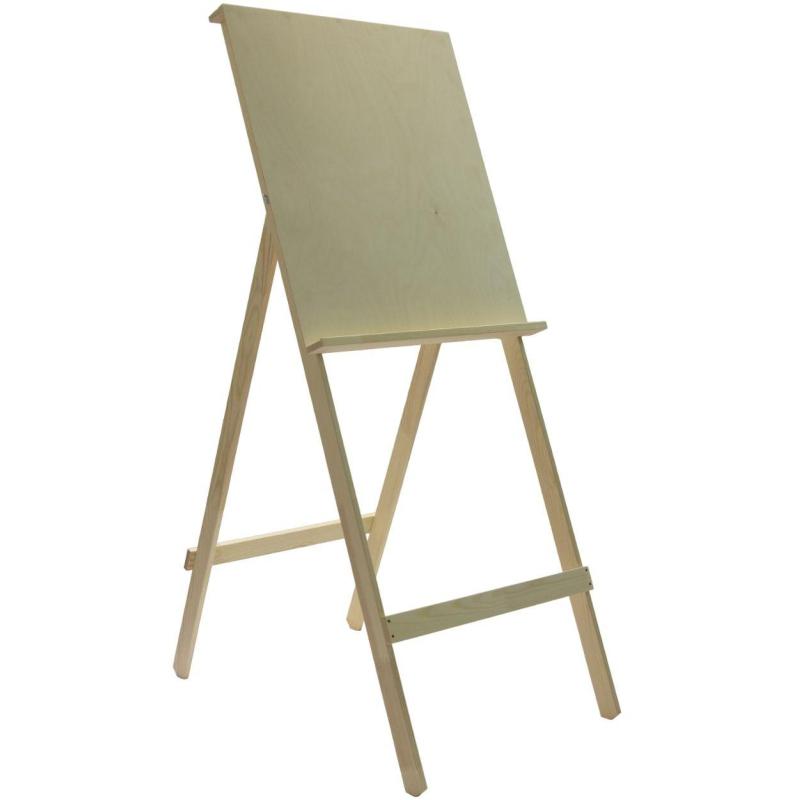 Мольберт напольный Туюкан Хлопушка <br><br>Мольберт ученический хлопушка — напольный деревянный мольберт-хлопушка с фанерным щитом, предназначенный для работ акварелью и не требующий планшета. Лист бумаги или картона может быть зафиксирован на рабочей поверхности — щите мольберта при помощи кнопок. Максимальные размеры закрепляемого листа бумаги или картона составляют 70×60 см. Высота 150 см, в установленом виде 130 см. Поставляется в собранном виде.