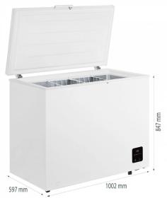 Морозильный ларь Gorenje FHC25A6W<br><br>Морозильный ларь обеспечивает удобное хранение продуктов с общим объёмом 250 л и полезным объёмом 245 л. Он оснащён откидной дверцей с надёжным замком и удобными колёсиками для лёгкого перемещения.<br><br>В комплект входят 2 корзины, инструкция по эксплуатации и гарантийный талон. Внутреннее пространство дополнено подсветкой, управление осуществляется через электронную панель, установлен один компрессор.<br><br>Морозильник поддерживает температурный диапазон от −24 до −18°C и работает в климатических классах N, SN, ST, T. Система размораживания — ручная. Уровень шума составляет 42 дБ, среднесуточное энергопотребление — 0.98 кВт·ч, потребляемая мощность — 140 Вт.<br><br>Габариты устройства: ширина 1002 мм, глубина 597 мм, высота 847 мм.<br><br>Внешний вид и/или характеристики товара могут быть изменены производителем в соответствии с производственным процессом.<br><br><b>Пуско-наладочные работы данного оборудования должны проводиться специализированной сервисной организацией. Более подробно с процессом ввода оборудования в эксплуатацию и условиями гарантийного обслуживания можно ознакомиться в руководстве/паспорте к товару.</b>
