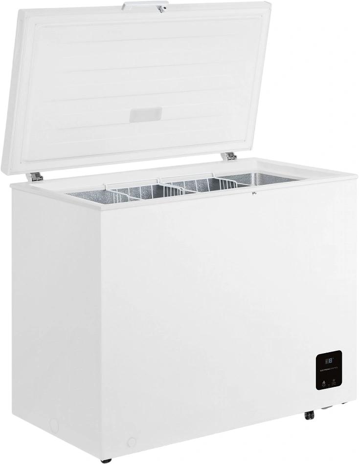 Морозильный ларь Gorenje FHC30A6W<br><br>Предназначен для надёжного хранения продуктов с общим и полезным объёмом 297 л. Он оснащён откидной дверцей с надёжным замком и удобными колёсиками для перемещения.<br><br>В комплект входят 2 корзины, инструкция по эксплуатации и гарантийный талон. Внутри предусмотрена подсветка, управление осуществляется через электронную панель, установлен один компрессор.<br><br>Морозильник поддерживает температурный диапазон от −24 до −18°C и работает в климатических классах N, SN, ST, T. Система размораживания — ручная. Уровень шума — 42 дБ, среднесуточное энергопотребление составляет 0.98 кВт·ч, потребляемая мощность — 140 Вт.<br><br>Габариты устройства: ширина 1114 мм, глубина 630 мм, высота 847 мм.<br><br>Внешний вид и/или характеристики товара могут быть изменены производителем в соответствии с производственным процессом.<br><br><b>Пуско-наладочные работы данного оборудования должны проводиться специализированной сервисной организацией. Более подробно с процессом ввода оборудования в эксплуатацию и условиями гарантийного обслуживания можно ознакомиться в руководстве/паспорте к товару.</b>