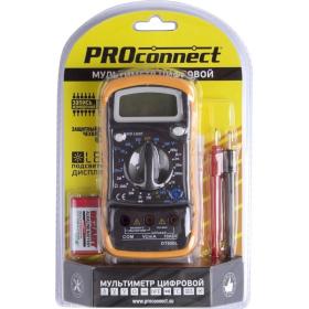 <p>Мульти́метр — электроизмерительный прибор, который включает в себя несколько функций и набор измеряемых параметров. Все приборы серии MAS830 измеряют постоянное и переменное напряжение, постоянный ток, сопротивление в цепи и температуру (для модели 838L). А также с помощью данного прибора можно проводить тестирование диодов и прозвонку целостности цепи. Данные приборы являются более совершенными в линейке мультиметров PROconnect, имеют противоударный бампер, функцию удержания данных на дисплее DATA HOLD — позволяет запомнить данные, если измерение проводится в труднодоступном месте, функцию подсветки дисплея — поможет в темноте или отсутствии электричества и освещения.<br /> Прибор MAS830L является портативным мультиметром, компактные размеры позволяют всегда носить его с собой. Но, несмотря на малые размеры, данный мультиметр обладает широким функционалом и это выгодно отличает его от других.<br /> Инженеры старались сделать прибор максимально удобным для использования. Выбор измеряемых величин и пределов измерений производится с помощью усиленного поворотного регулятора, благодаря которому исключается возможность случайного нажатия.<br /> Прибор изготовлен из высококачественных материалов, калибровка и тестирование приборов произведены под контролем компании REXANT INTERNATIONAL.</p> <p>Характеристики:<br /> Постоянное напряжение: 200 mВ/2В (±0,5% 3), 20 В/200 В (±0,8% 5), 600 В (±1% 5)<br /> Переменное напряжение: 200 В/600 В (±2% 10)<br /> Постоянный ток: 200 мкА/2 мА/20 мА (±1,8% 2), 200 мА(±2,0% 2), 10 A (±2,0% 10)<br /> Сопротивление: 200 Ом (±1,0% 10), 2 КОм/20 КОм/200 КОм/2 МОм (±1,0% 4)<br /> Тестирование диодов/транзисторов (hfe)<br /> Прозвонка целостности цепи<br /> Режим DATA HOLD<br /> Подсветка дисплея<br /> 3,<nobr>5-разрядный</nobr> дисплей<br /> Размер: 135×67×33 мм<br /> Тип батареи: PROconnect 9 В «Крона» (в комплекте)<br /> Противоударный чехол в комплекте<br /> Вес: 145 г (включая батарею)</p><br><!--noindex-->Внешний вид и/или характеристики товара могут быть изменены производителем в соответствии с производственным процессом.<!--/noindex-->