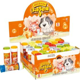 Мыльные пузыри Веселая Затея Животные 60 мл<br><br>Мыльные пузыри подойдут для игр в любое время года. Баночка украшена яркими изображениями животных, что делает её особенно привлекательной для детей.<br><br>На крышке находится небольшая игра-лабиринт, которая добавляет интереса и позволяет заняться чем-то ещё между запуском пузырей. Игрушка подойдёт для активных игр на праздниках, прогулках или дома.<br><br>Объём флакона — 60 мл.<br><br> Продукт произведён в Италии.