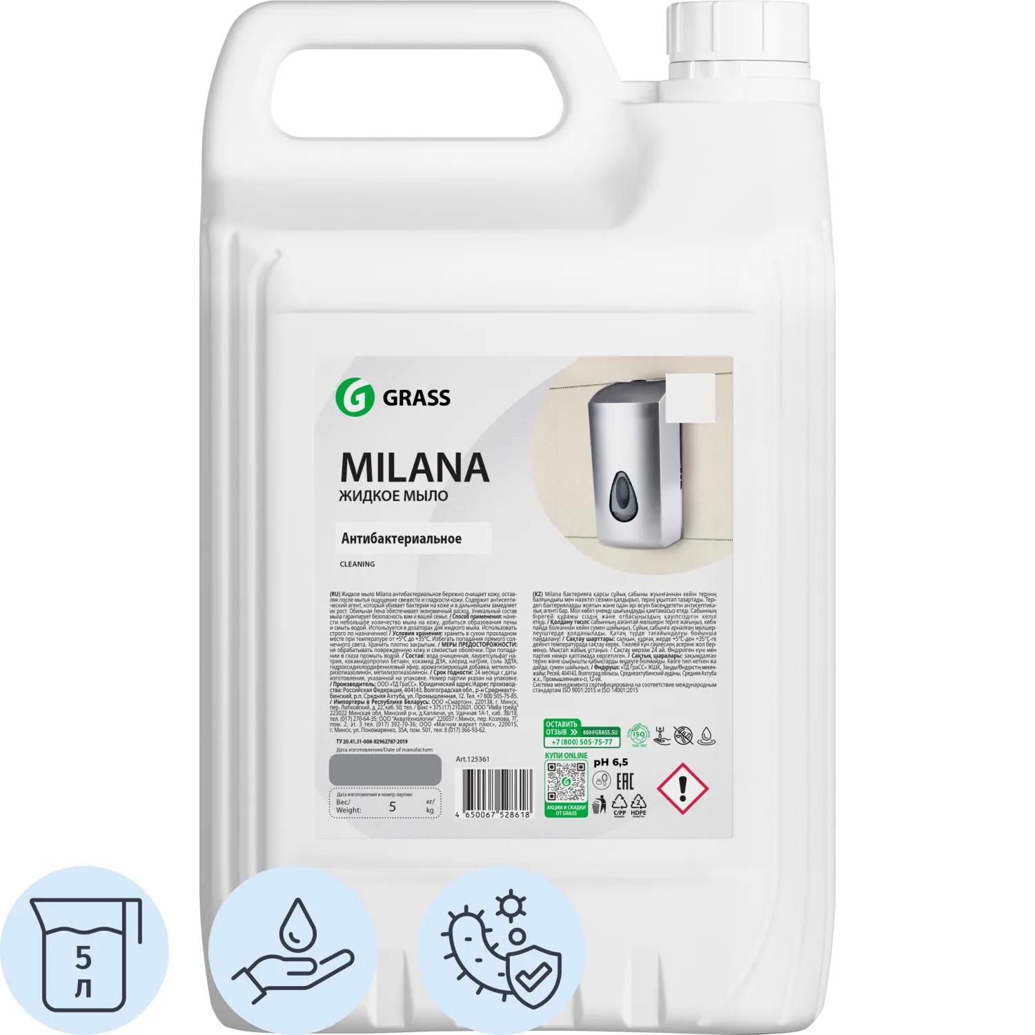 Мыло жидкое ПРОФ антибакт. б/запаха Grass/MILANA Антибактериальное, 5л / 4dealer.ru
