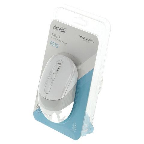 Мышь беспроводная A4TECH Fstyler FG10 оборудована оптическим светодиодным сенсором с разрешением 2000 dpi. Пользователям гарантировано плавное скольжение манипулятора и точное наведение курсора.Мышь беспроводная A4Tech FStyler FG10 представлена в белом корпусе с серой вставкой. Корпус мыши спроектирован так, чтобы пользователь мог брать ее любой рукой, не ощущая дискомфорта во время работы. Манипулятор оснащен светодиодным датчиком, обладающим разрешением 2000 dpi, что позволяет достичь высокой точности позиционирования. На корпусе находится специальная кнопка, позволяющая изменять разрешение датчика: возможна работа мыши в разрешении 1000 dpi, 1600 dpi и 2000 dpi.