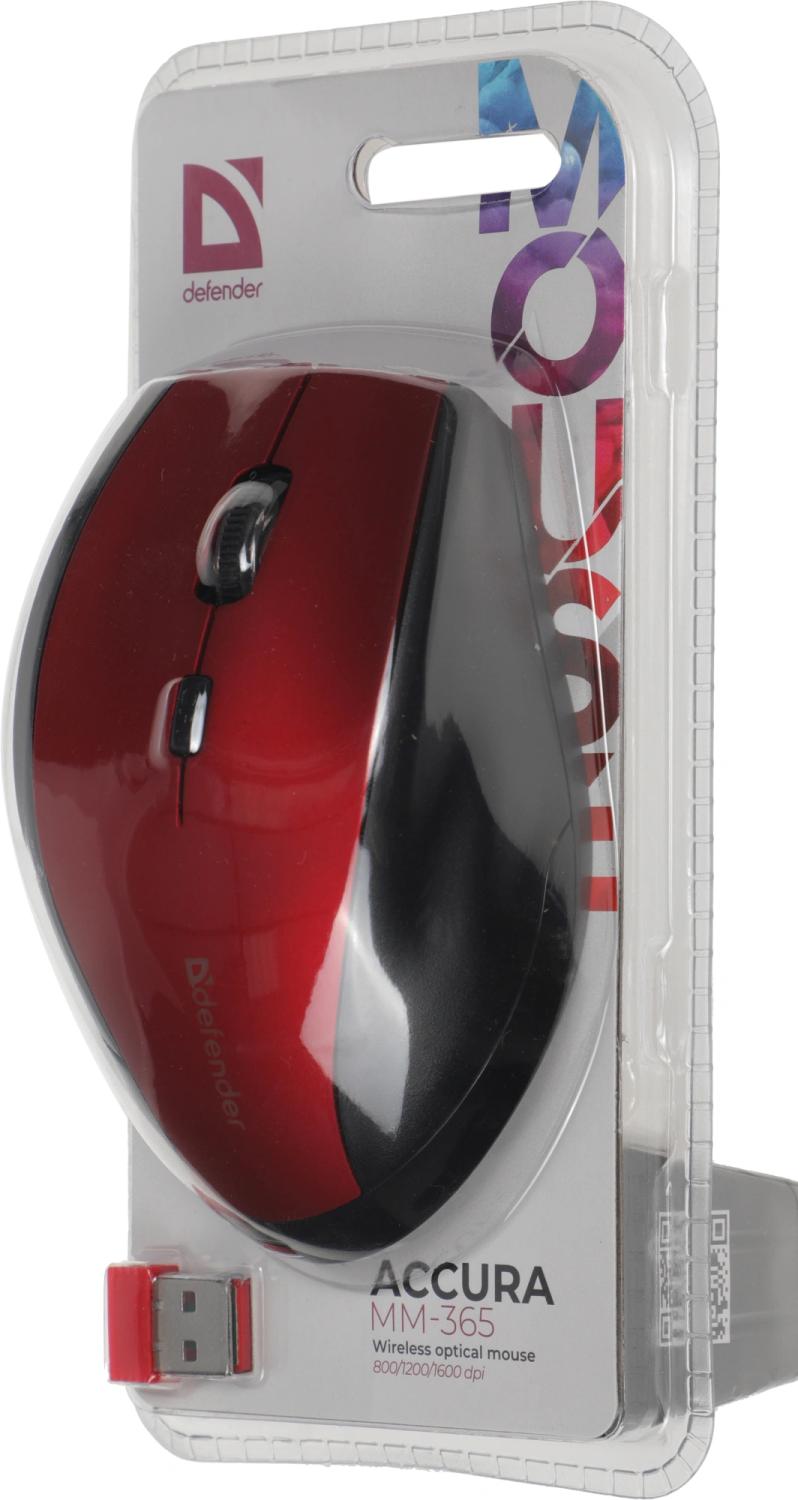 Мышь Defender Accura MM-365 красный оптическая 1600dpi беспров. USB 5but (52367) / 4dealer.ru