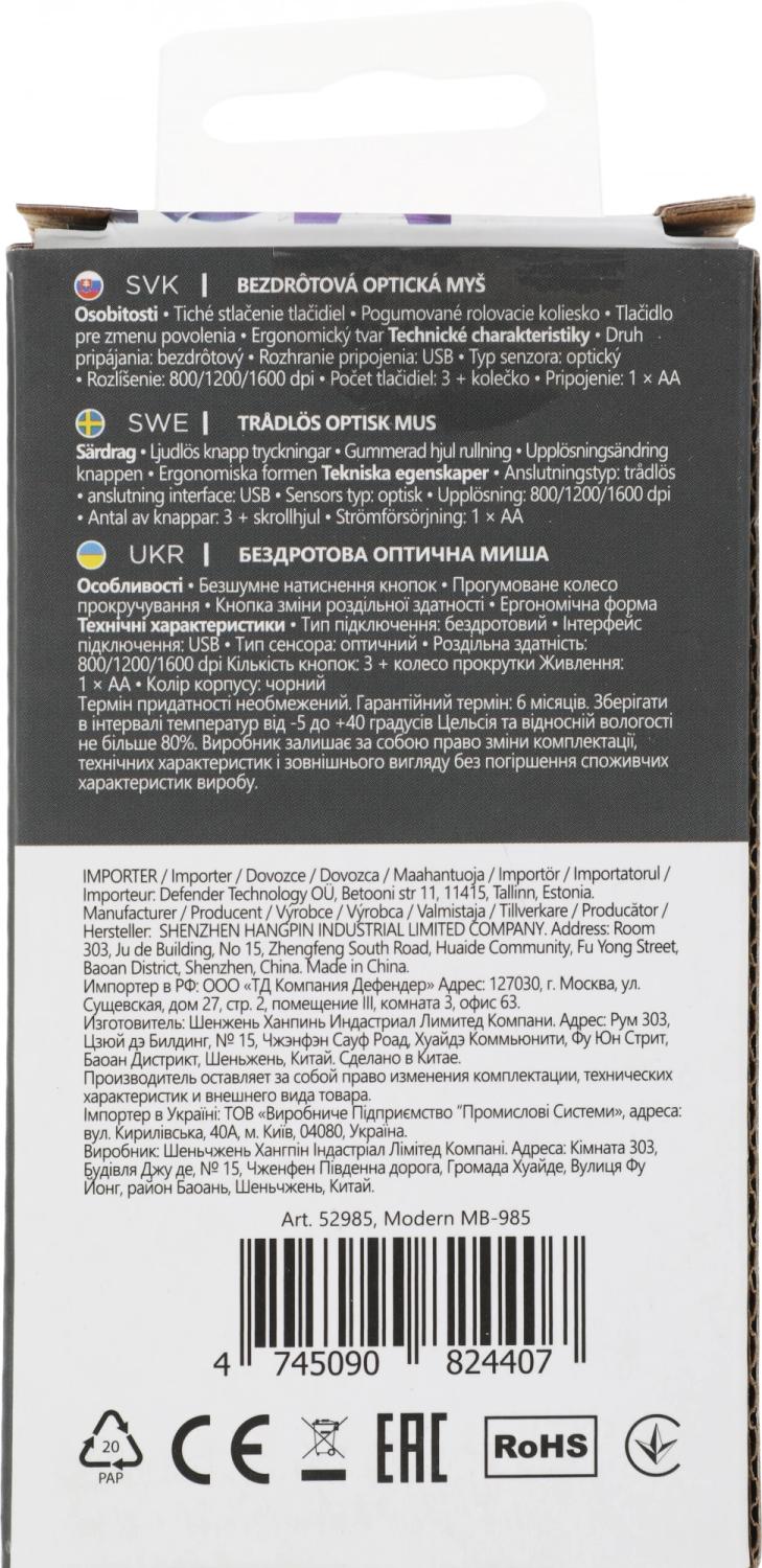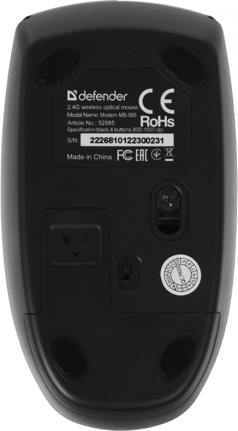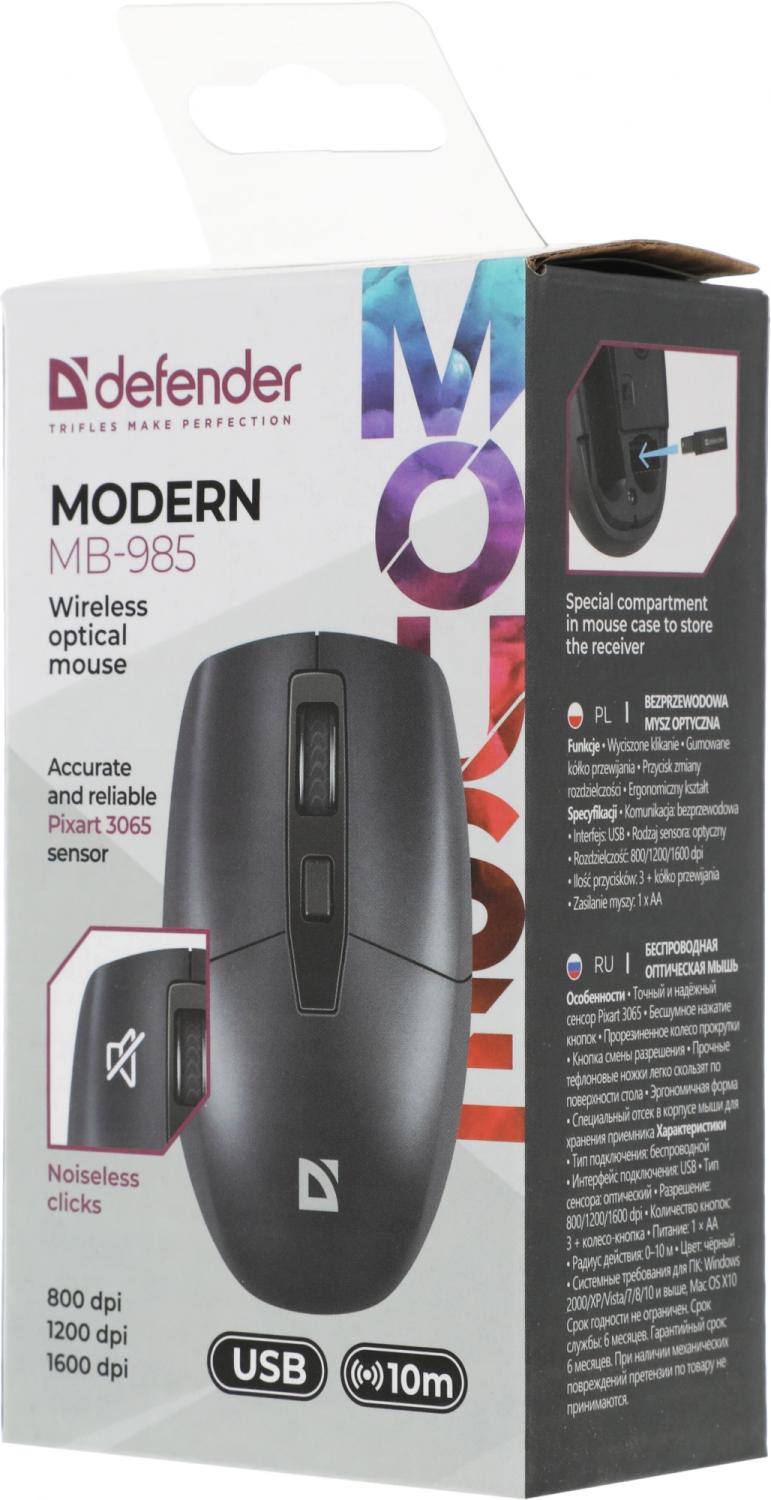 Мышь Defender Modern MB-985 черный оптическая 1600dpi беспров. USB 3but (52985) / 4dealer.ru