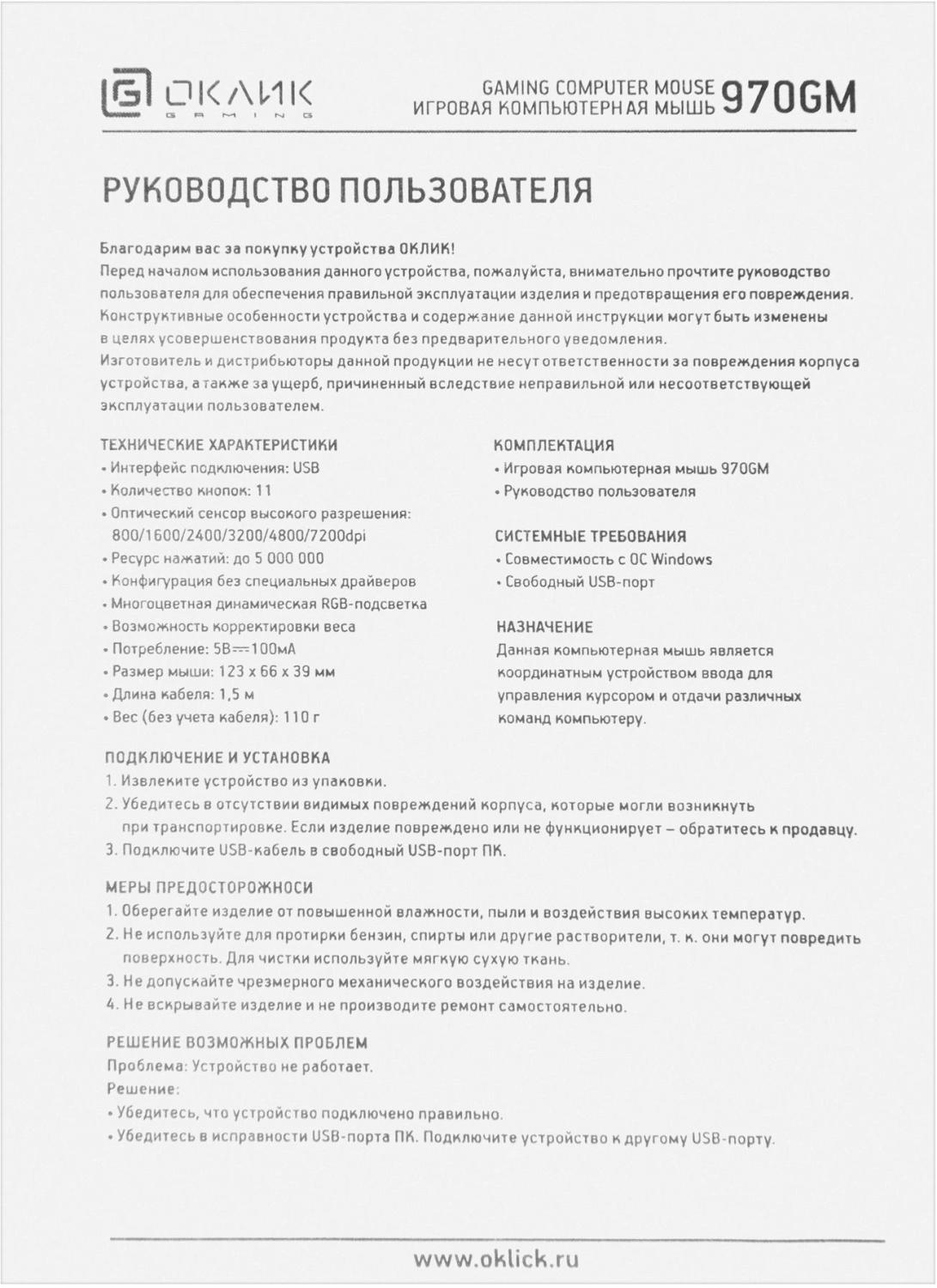 | Частота опроса USB порта | 125/250/500/1000 |