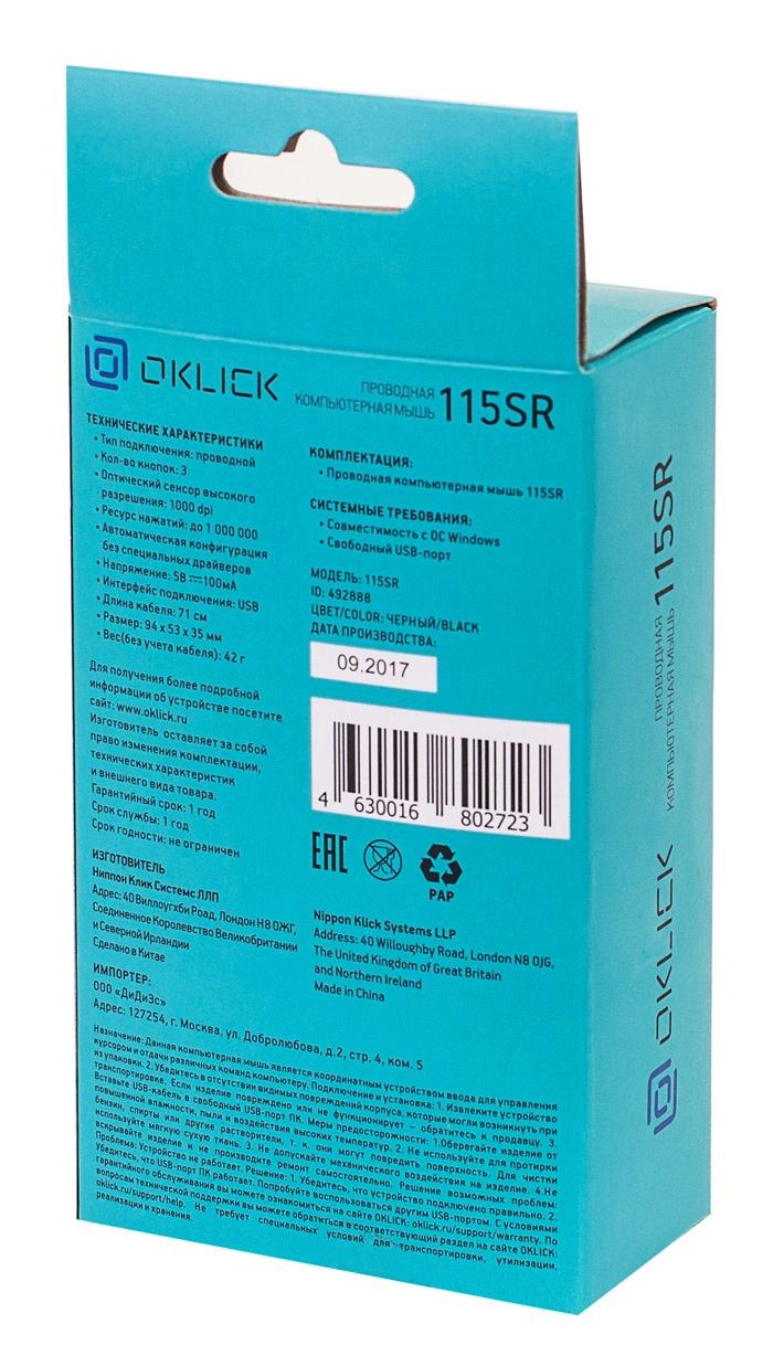 Мышь Оклик 115SR черный оптическая 1000dpi USB для ноутбука 3but (492888) / 4dealer.ru