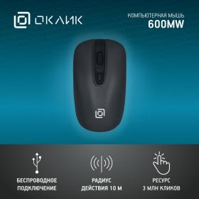 Мышь Оклик 600MW черный оптическая 1600dpi беспров. USB 4but (1487915)