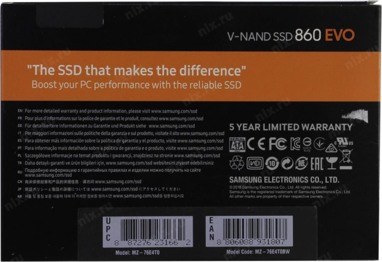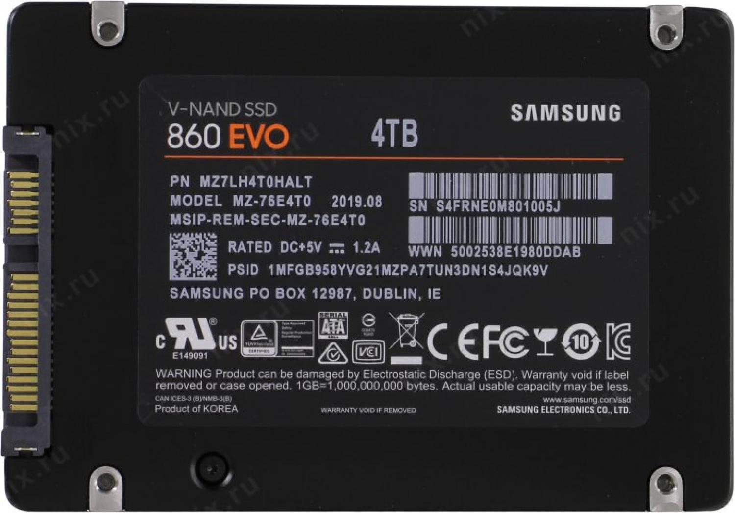 <div>Твердотельный накопитель Samsung 860 EVO MZ-76E4T0BW ёмкостью 4 ТБ — это надёжное и проверенное решение для модернизации ПК и рабочих станций от мирового лидера в производстве памяти. Накопитель построен на технологии TLC 3D NAND, которая обеспечивает высокую производительность и долговечность. Скорость последовательного чтения достигает 550 МБ/с, а записи — 520 МБ/с, что полностью раскрывает потенциал интерфейса SATA III. Благодаря высокой скорости случайного доступа, диск демонстрирует отличную производительность в реальных сценариях использования — от загрузки операционной системы до работы с приложениями и играми. Низкое энергопотребление делает его идеальным выбором для ноутбуков и энергоэффективных систем. Тонкий корпус обеспечивает совместимость с большинством ноутбуков и настольных ПК, поддерживающих стандартный 2,5-дюймовый форм-фактор SATA.</div><div>Ключевые преимущества:</div><div>- достаточно места для хранения обширных коллекций игр, фото- и видеоархивов, а также рабочих проектов;</div><div>- обеспечивает стабильную производительность и увеличенный ресурс работы;</div><div>- скорость чтения до 550 МБ/с и записи до 520 МБ/с полностью раскрывают возможности интерфейса SATA III;</div><div>- идеально подходит для ноутбуков, продлевая время автономной работы;</div><div>- совместим с большинством устройств, включая ультрабуки и тонкие ноутбуки.</div><div>Области применения:</div><div>- настольные ПК и рабочие станции;</div><div>- ноутбуки и ультрабуки;</div><div>- игровые системы;</div><div>- системы хранения данных;</div><div>- хранение больших объёмов мультимедиа и документов.<br>Samsung 860 EVO — это проверенное решение для тех, кто ценит стабильность, надёжность и высокую производительность.</div>