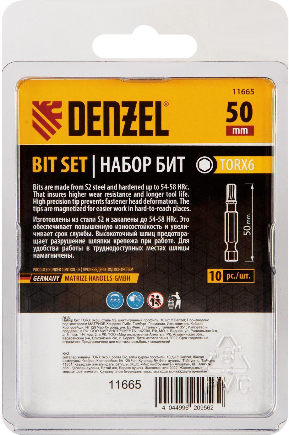 Набор бит Denzel 11665 универсал. (10пред.) для шуруповертов / 4dealer.ru