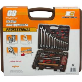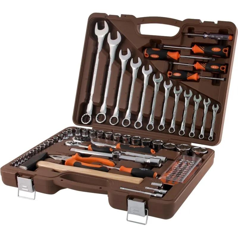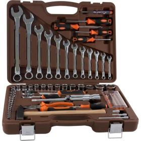 Набор инструмента универсальный Ombra OMT88S 88 предметов универсальный набор инструмента, применяющийся для обслуживания резьбовых деталей с внешним рабочим шестигранным профилем от 4 до 32 мм. при этом сохраняется возможность использования дополнительного инструмента аналогичного размера в широком диапазоне. Большой выбор изделий для производства работ с крепежными деталями с внутренними рабочими профилями значительно расширяет область применения набора. Комплектация Головки короткие ¼ дюйма; 4,4. 5,5,5. 5,6,7,8,9,10,11,12,13 мм;Удлинители ¼ дюйма; 50,100 мм;Ключ трещоточный с быстрым сбросом 48 зубов ¼ дюйма; ;Битхолдер ¼ дюйма; ;Набор бит ¼ дюйма; 31 предмет;Рукоятка отверточная ¼ дюйма;Головки короткие ½ дюйма; 8,9,10,11,12,13,14,16,17,18,19,21,22,24,27,30,32 мм;Удлинители ½ дюйма; 125, 250 мм;Ключ трещоточный с быстрым сбросом 48 зубов ½ дюйма; ;Переходник 3/8 дюйма; -½ дюйма; с отверстием для удлинителя;Ключи гаечные комбинированные: 8,9,10,11,12,13,14,15,17,19,22,24 мм;Пассатижи 175 мм;Молоток 0,3кг;Отвертки: PH1×75 мм,PH2×100 мм,5. 5×75 мм,6. 5×100 мм;Отвертка индикаторная;Пластиковый кейс.<br><br><!--noindex-->Внешний вид и/или характеристики товара могут быть изменены производителем в соответствии с производственным процессом.<!--/noindex-->