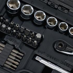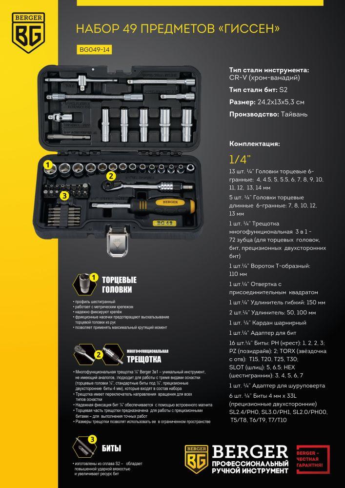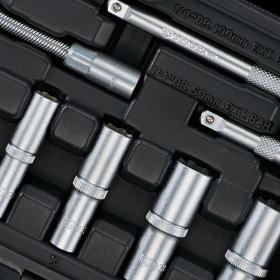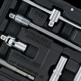 | Дополнительно в наборе, 1/4"DR | Вороток Т-образный 110 мм Отвертка с присоединительным квадратом 150 мм Удлинитель гибкий 150 мм Удлинитель 50, 100 мм Кардан шарнирный Адаптер для бит |