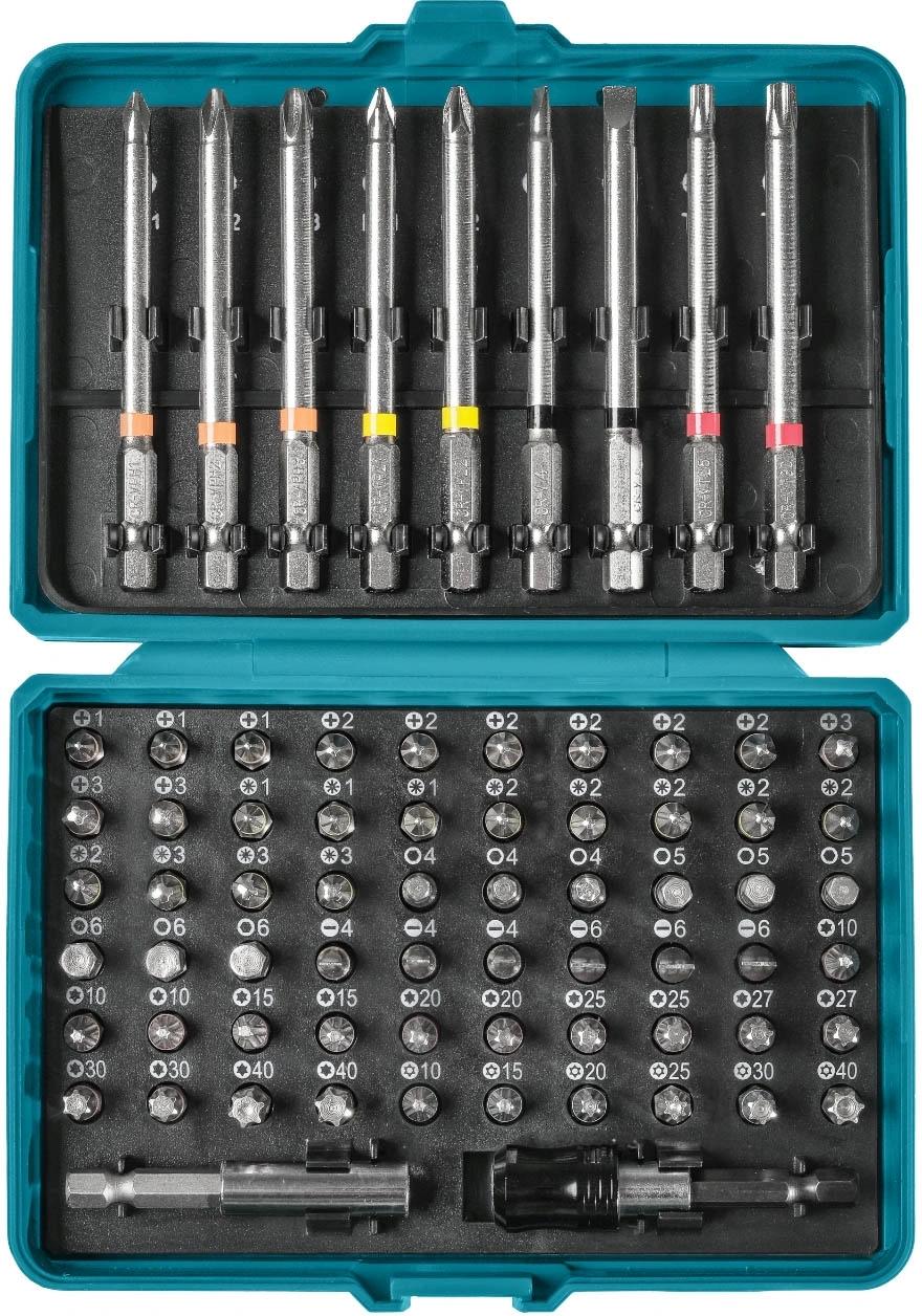 | Комплектация бит | набор бит H/HEX (шестигранник), набор бит Ph (крест), набор бит Pz (крест), набор бит SL (шлиц), набор бит Torx, набор бит Torx hole |