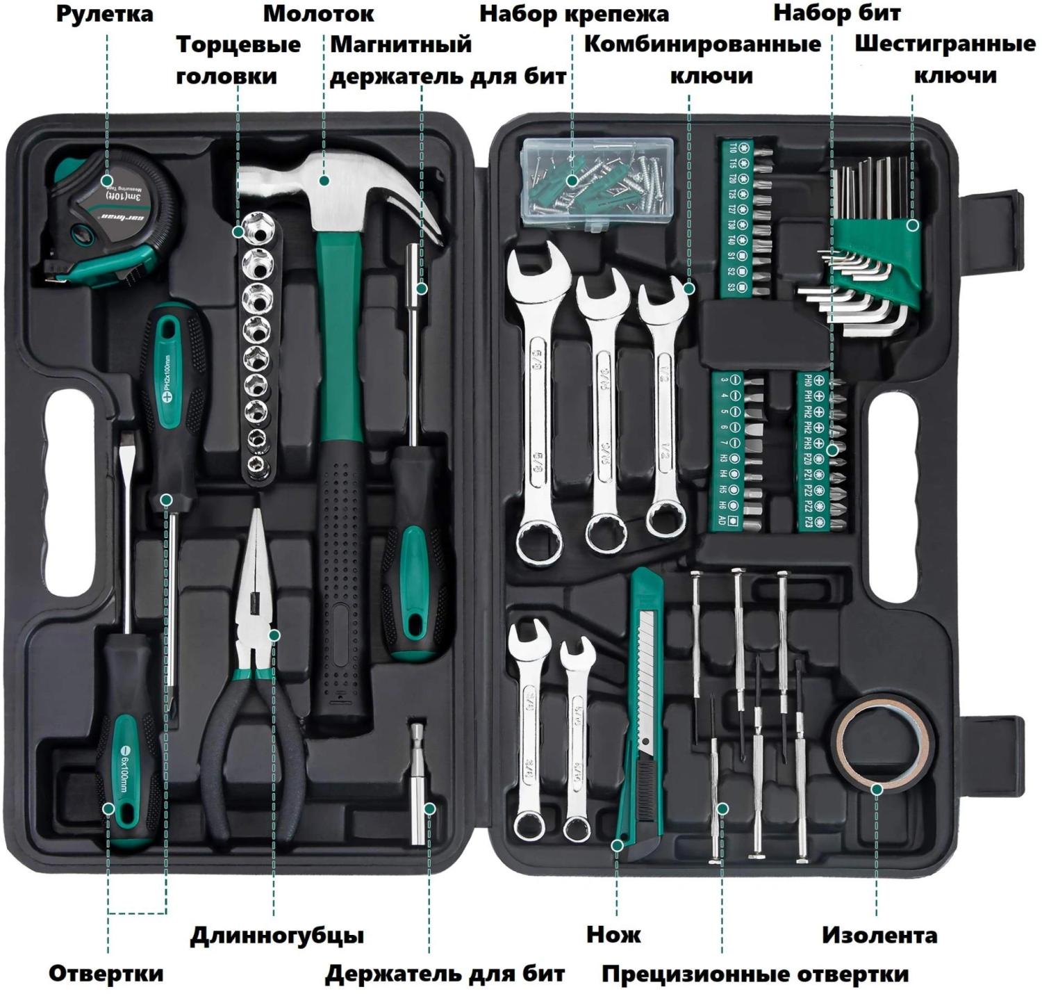 | Комплектация | жесткий кейс, набор бит, набор головок, набор ключей, набор крепежа, набор отверток, набор шестигранных ключей |
