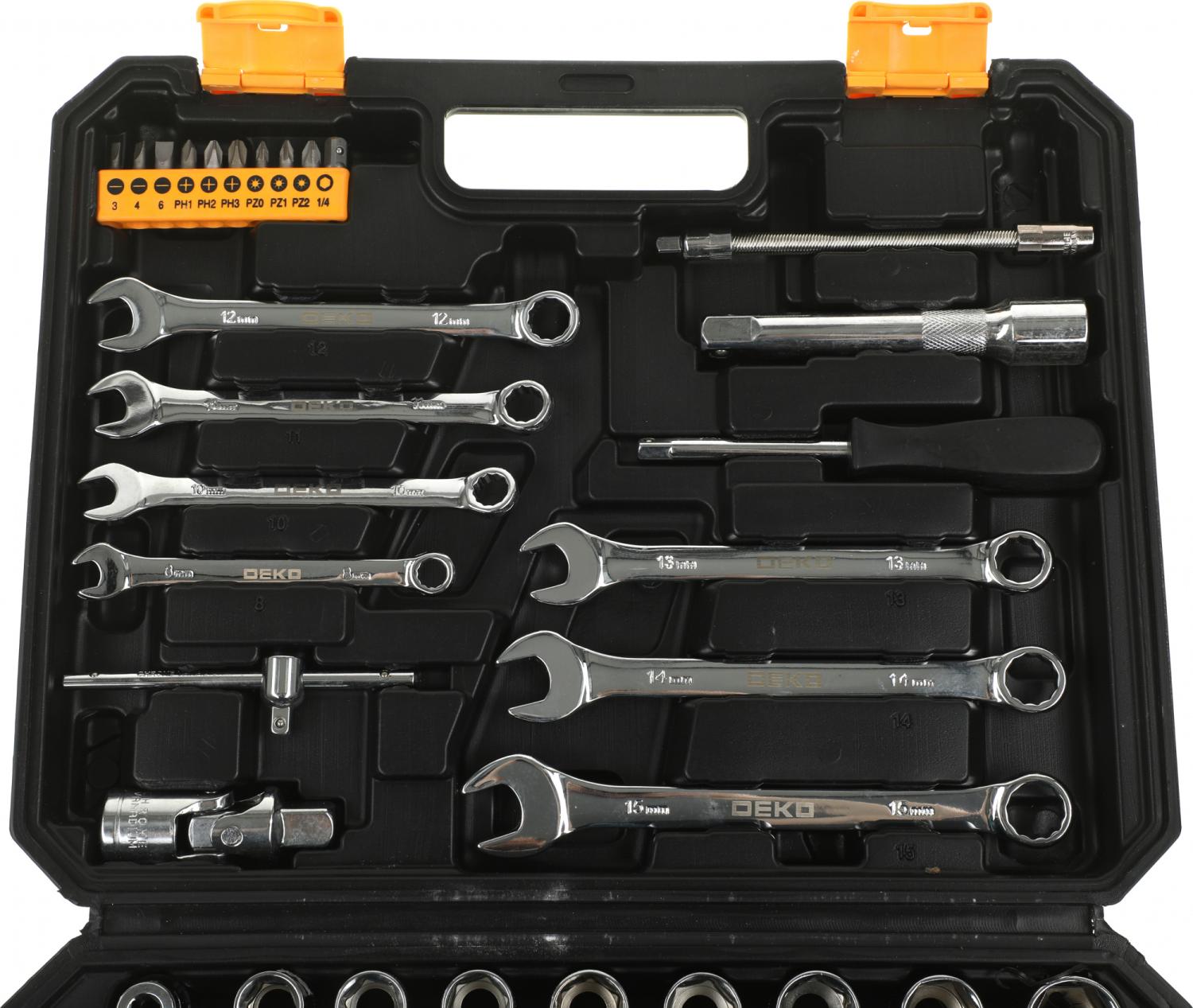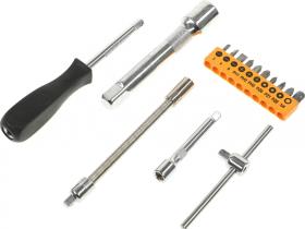 | Дополнительно в наборе, 1/4"DR | Держатель головок Универсальный шарнир Вороток Удлинитель 3" Гибкий стержень Соединитель Адаптер 6.35 мм Гаечный ключ с трещоткой |