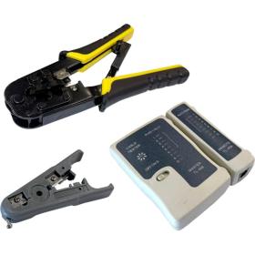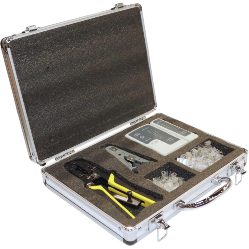 | Дополнительная информация | В набор входят: Инструмент для обжима коннекторов RJ-12 и RJ-45, торцевой; Инструмент для зачистки кабеля; Тестер для определения правильности расключения витопарных кабелей (без батареек); Коннектор RJ-45 8P8C cat 5E - 30 штук; Коннектор RJ-12 6P6C cat 3 - 30 штук. |